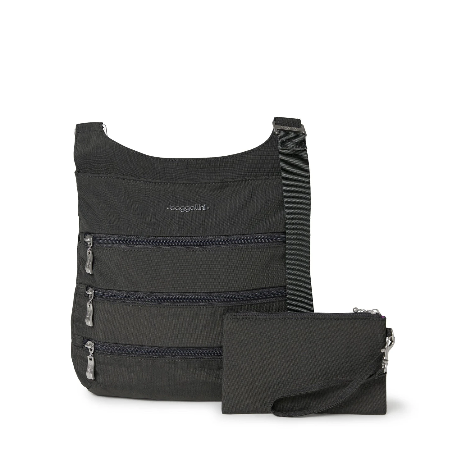 Slim and eye-catching, this large crossbody bag is a chic way to tackle organization. Exterior zippers and interior pockets easily house your cell phone, makeup and keys.