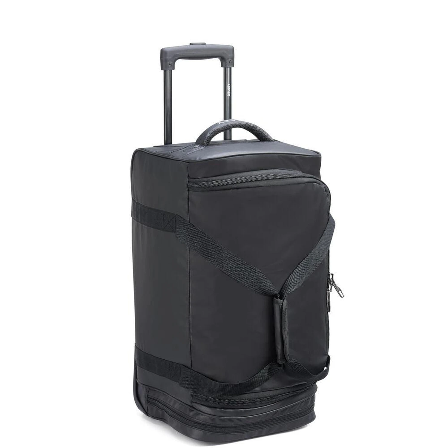 Wheel it or hand-carry it as a duffel bag ! This rolling carry-on duffel is perfect for a short trip or a long week-end getaway. The top load opening provides easy access to packed belongings, while a large exterior pocket allows for easy storage of a pair of shoes or return-home laundry.