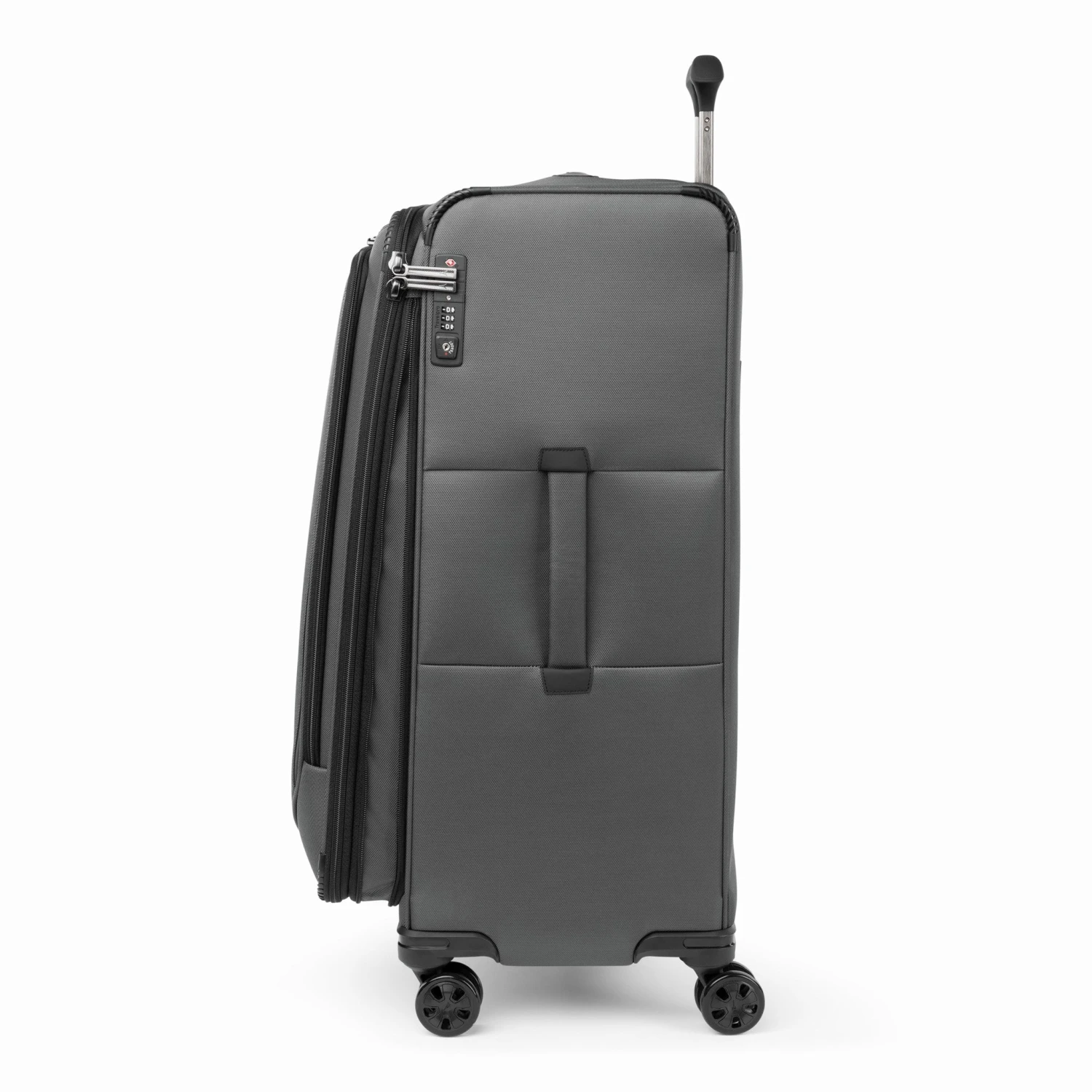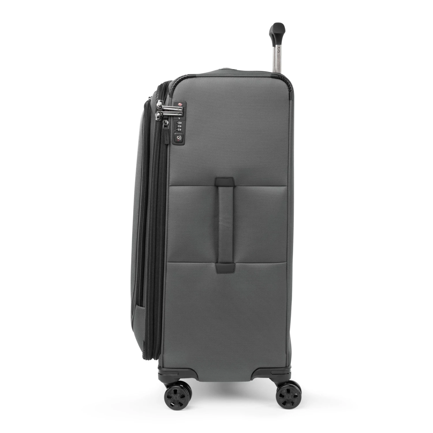 Even fully packed, this large check-in spinner’s PrecisionGlide System ensures precise control and effortless roll on eight ultra-durable, 360° MagnaTrac self-aligning spinner wheels led by a four-stop, height-adjustable PowerScope Handle with comfortable Contour Grip.
